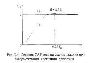 реакция САР тока на скачок задания вызывает разгон двигателя под действием