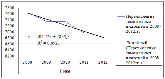 Оренбургской таможней, так же было проведено прогнозирование сумм таможенных