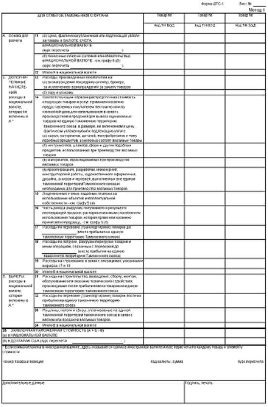 определения таможенной стоимости ввозимых товаров в таможенном союзе