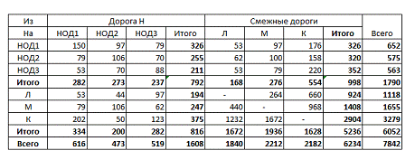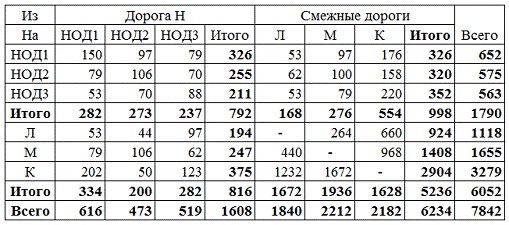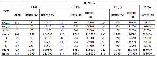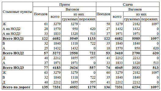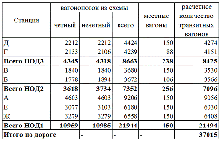 В таблице 3.2 при суммировании четного и нечетного вагонопотоков