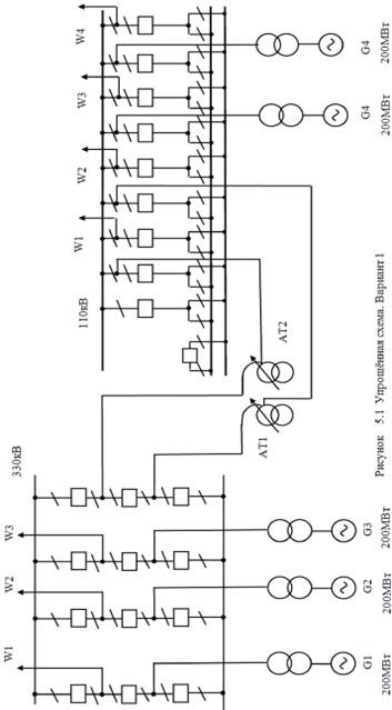 проекта было разработано два варианта схем выдачи мощности, выбрано основное