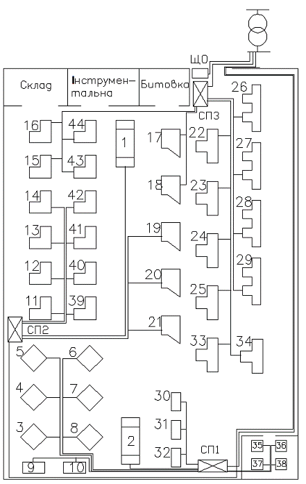 розрахунку силового пункту 1 (СП 1).