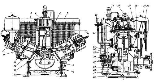компрессор с клапанными коробками, холодильником, вентилятором и воздушными