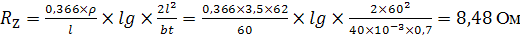 . Опір одного вертикального заземлювача(стержня)