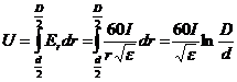 соответственно внешнего и внутреннего цилиндрических проводников.