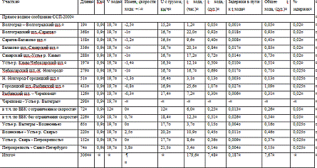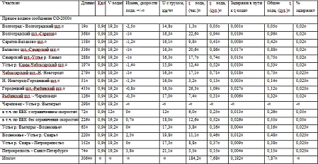 технических скоростей движения по данным таблицы формы 5-к;