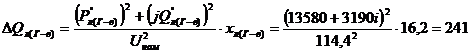 где lj - длина линии, км; Pj, Qj - активная (МВт) и реактивная (МВАр)