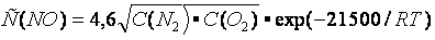 протекания реакции окисления азота в зоне горения за счет увеличения скорости