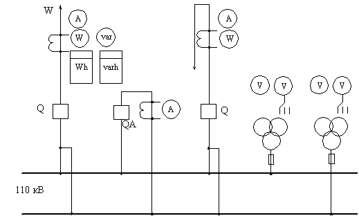 мощности между точками сети. Она имеет 2 питающие и одну отходящую линию 110