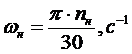 Определяем номинальную угловую скорость,