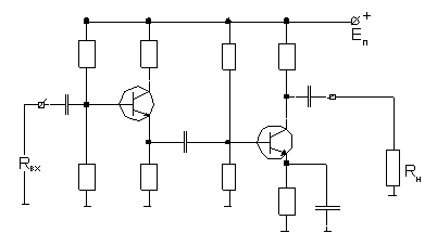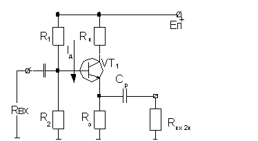 усилителя взята стандартная схема включения транзистора с общим эмиттером для
