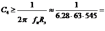 самой низкой частоте должно быть во много раз меньше входного сопротивления: