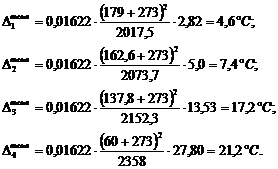 по паровым таблицам температуры конденсации вторичного пара и удельные теплоты