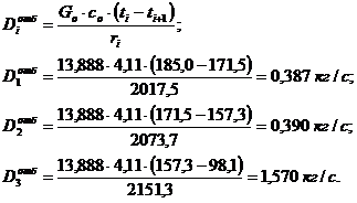первом приближении количество выпаренной воды по корпусам принимаем равным,