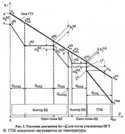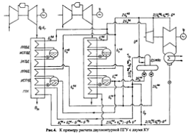 ВД двух КУ, смешиваются и подаются паровой турбине. Потоки пара, вышедшие из