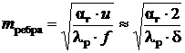 = 0,001 м - зазор между ребрами;