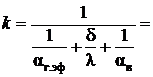 и коэффициент теплопередачи k станет