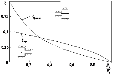 внезапного сужения и внезапного расширения от отношения меньшей площади