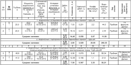 формирования эксплуатационных запасов ПВ и оценить обеспеченность запасов,