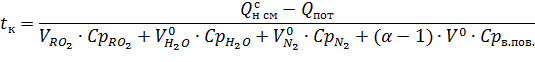 газу склала r=0,86, природного - r=0,14. В результаті теплового розрахунку були