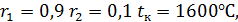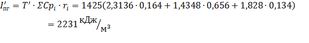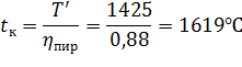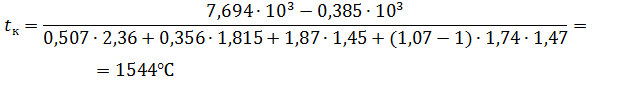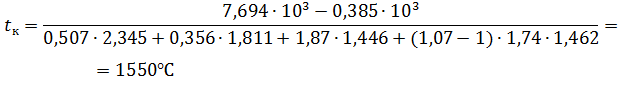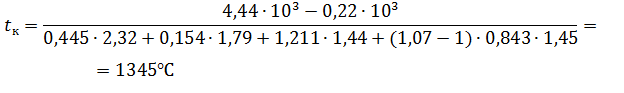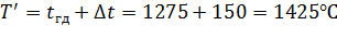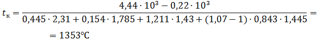 продуктов горения на входе в насадку T1=1425