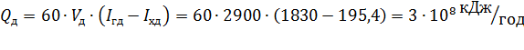 близько 700 000 м3/ч, що еквівалентно по теплу приблизно 100 т/год.,