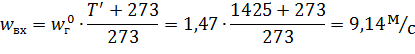 швидкість продуктів згоряння на вході в насадку