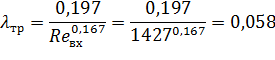 для визначення коефіцієнту опору тертя, в залежності від критерію Рейнольдса,