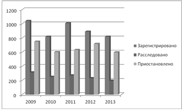Раскрываемость данной категории преступлений составляет 42,9%. В 2013 году их