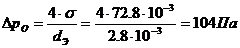 давления на преодоление сил поверхностного натяжения жидкости при входе газа в