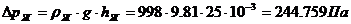 сопротивление газожидкостного слоя рассчитывается по формуле: