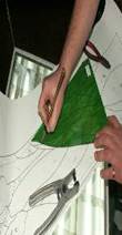 приготовленный планшет таким образом, чтобы витражные работы пропустили через