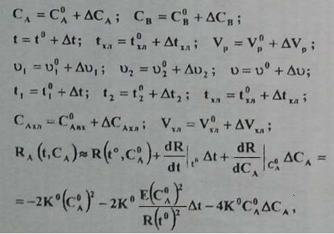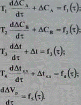 объем (уровень) реакционной смеси - Vp; концентрации компонентов в выходном потоке - СА, Св; температура смеси