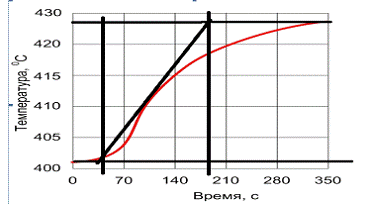 (точка с максимальной скоростью изменения параметра). Интервал времени ОC от ввода возмущения до пересечения