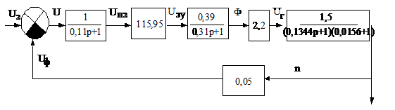 передаем это значение на элемент 3 (обмотка возбуждения) она в свою очередь