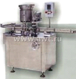 флаконы поступают на постоянно вращающийся диск, где на резиновую крышечку