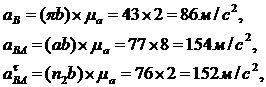 ускорения отдельных точек механизма и реакции в кинематических парах, величину
