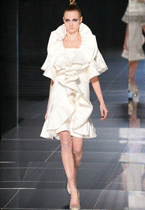 складки, защипы, тесьма, кружево. Коллекция выигрывает за счет объемов ткани.