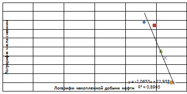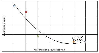 жидкости составит -0,5; для накопленной добычи нефти - -0,7; для дебита - -0,
