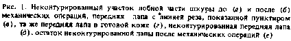 контур шкуры участков, не представляющих товарной ценности в готовой коже.