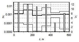 большой вариации K в пределах одного слоя, что характерно для всех глубин. Это может
