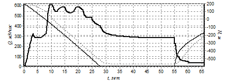водопритока (28-55 лет после начала отработки) характеризуется практически