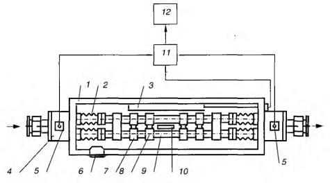 через фильтр 13 поступает в капилляр 12. Давление на входе капилляра измеряется