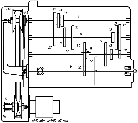 выдержана, а именно: расчёт кинематики коробки скоростей токарно-винторезного