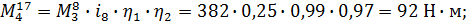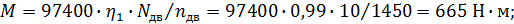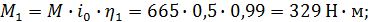 Крутящий момент, передаваемый от электродвигателя на вал I: