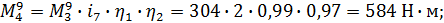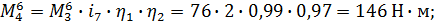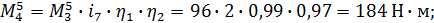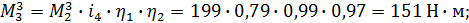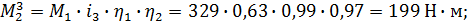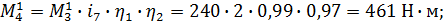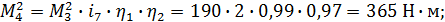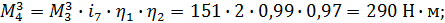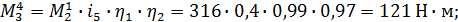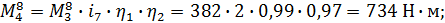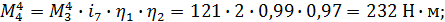 Крутящие моменты, передаваемые с вала III на вал IV: