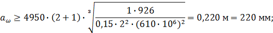 Подставляем все значения в формулу и определяем межосевое расстояние: