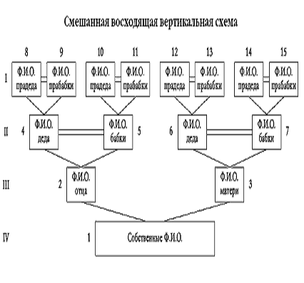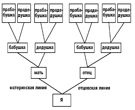 Схема прямого и бокового родства по восходящим и