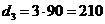 = 280 (мм) - принятая длина на чертеже угла поворота,