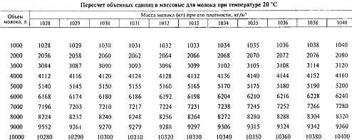 приемке молока по объему пересчитывают объемные единицы в массовые в